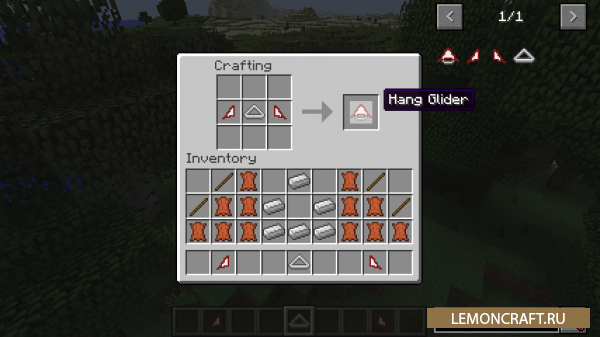 Мод Open Glider позволяет вам скрафтить дельтаплан на котором вы сможете вознестись к облакам и парить на ранее недостижимой высоте. Данный мод удобен тем, что с его помощью вам не составит особого труда спуститься с горы или, с большой высоты, осмотреть свои владения.