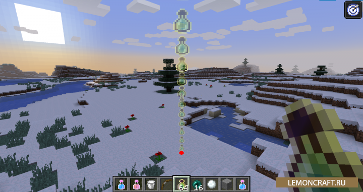 Мод Potion of Aiming добавляет в игру новое зелье, которое позволяет вести прицельный огонь по цели благодаря видимой траектории полета предметов. На небольшом расстоянии мод работает так себе, но если расстояние большое, попадание в цель практически 100%. Мод работает со всеми предметами, которые можно бросать.